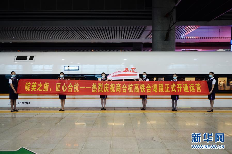 6月28日,在合肥南站,合肥客运段工作人员在合肥南至杭州东的G9394次列车前留影。新华社发(黄博涵摄)