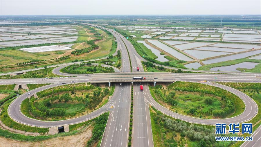 这是6月28日拍摄的唐山至曹妃甸生态廊道(无人机照片)。近日,河北省唐山市唐山至曹妃甸生态廊道工程全线竣工。该生态廊道主要位于承唐高速及唐曹高速沿线,总长度约70公里,工程在整体风貌把握上充分尊重现状林、村庄、鱼塘、稻田、湿地等生态本底条件,因地制宜设计,成为一道亮丽的风景线。新华社记者牟宇摄