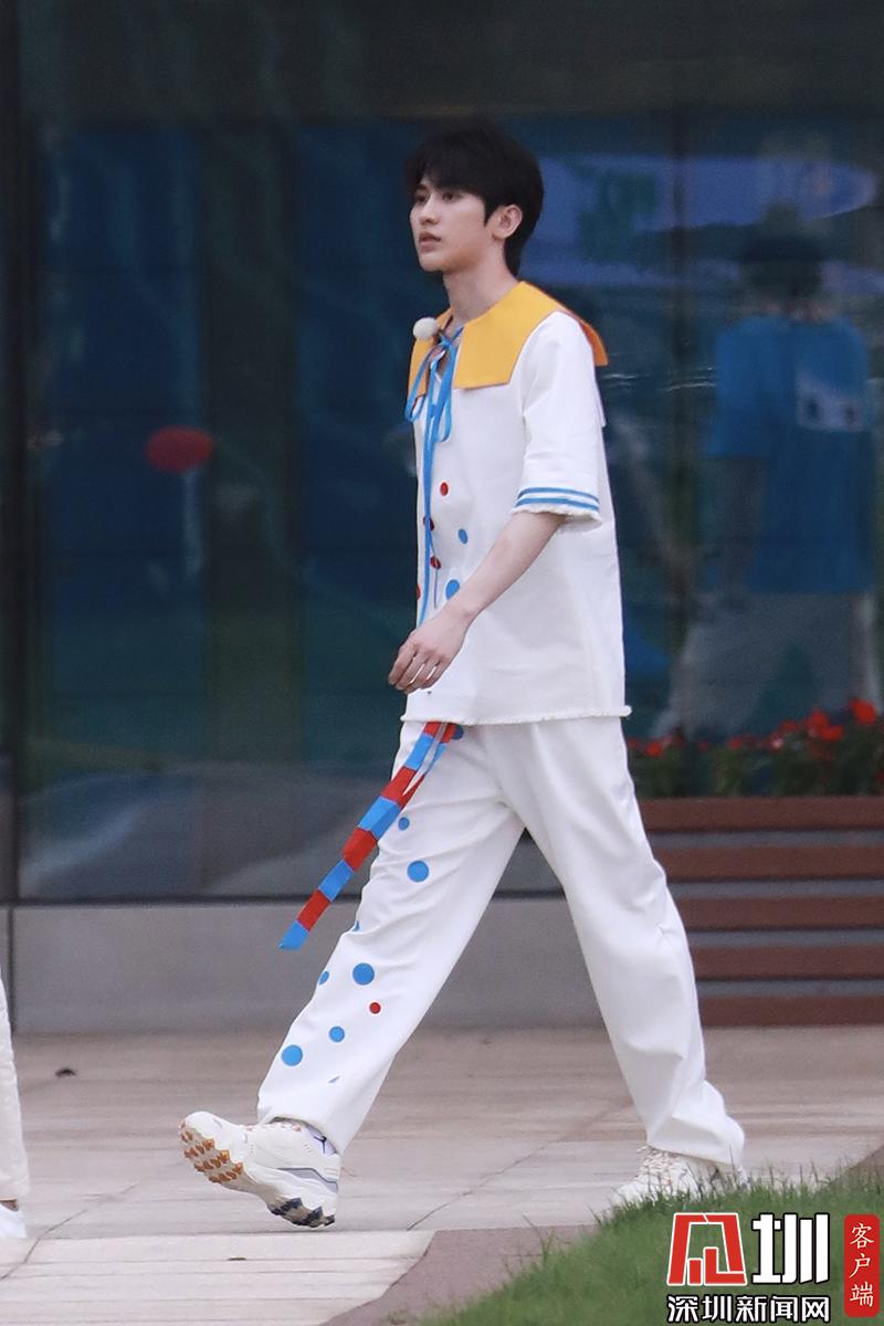 蔡徐坤穿白色波点装帅气阳光。