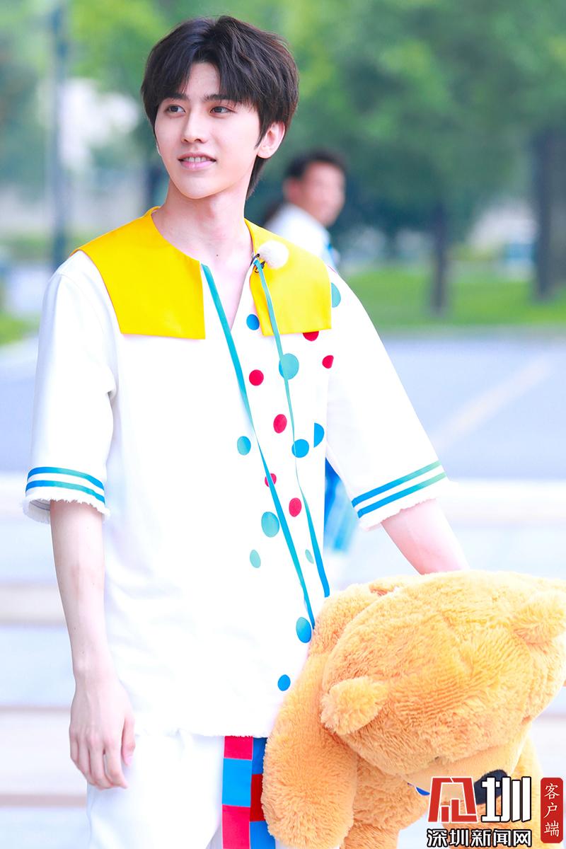 蔡徐坤穿白色波点装帅气阳光。