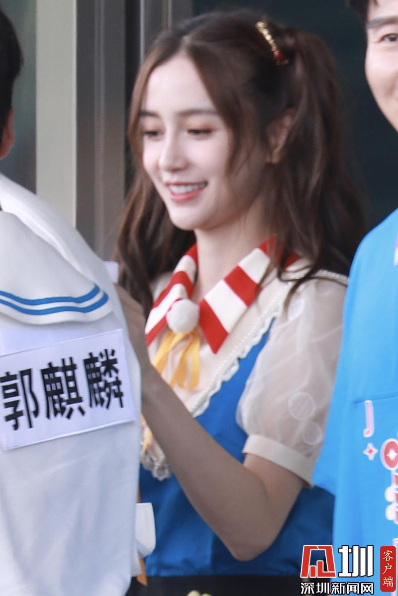 杨颖(angelababy)穿蓝色背带裙扎双马尾清新可爱