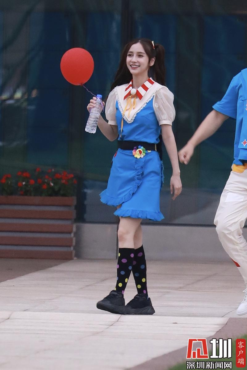 杨颖(angelababy)穿蓝色背带裙扎双马尾清新可爱