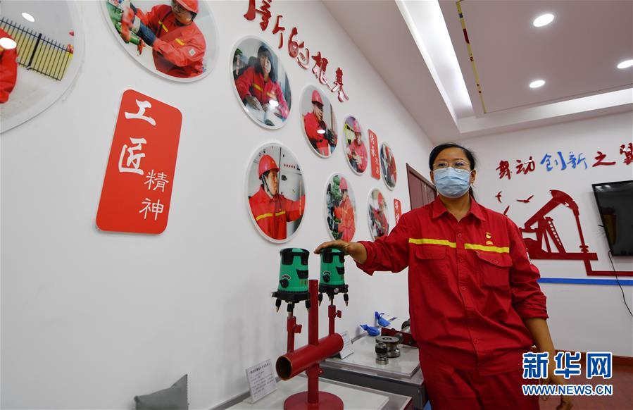 6月29日,冯萌萌在“冯萌萌劳模创新工作室”内介绍情况。新华社记者李然摄