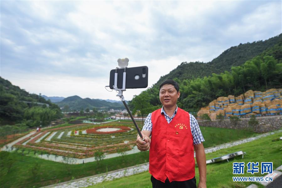 6月29日,新登镇上山村党总支书记汪卫中通过手机直播推介当地乡村旅游景点。近日,浙江省杭州市富阳区新登镇来自不同领域、有着不同身份的基层党员们纷纷化身网络“主播”,借助抖音、朋友圈等网络载体,倾情推介家乡的山乡风貌、山乡味道、山乡民俗、山乡风情。新华社记者徐昱摄