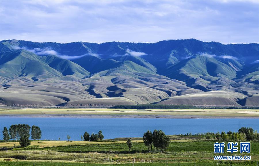 这是6月29日拍摄的位于新疆特克斯县境内的喀拉托海湖风光。时值夏日,位于天山脚下的新疆特克斯县境内的喀拉托海湖风光宜人,景色优美。新华社记者王菲摄