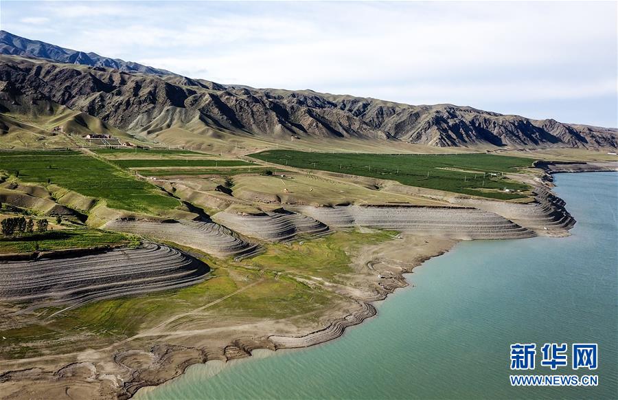 这是6月29日无人机拍摄的位于新疆特克斯县境内的喀拉托海湖风光(无人机照片)。时值夏日,位于天山脚下的新疆特克斯县境内的喀拉托海湖风光宜人,景色优美。新华社记者王菲摄
