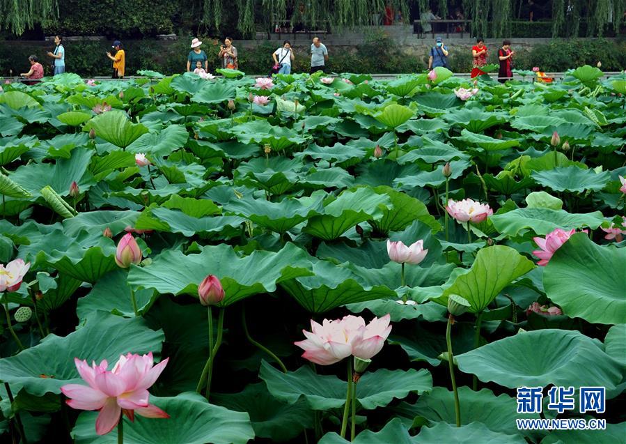 近日,河南郑州紫荆山公园内的荷花陆续绽放,吸引大批市民和游客前来观赏。新华社记者李安摄