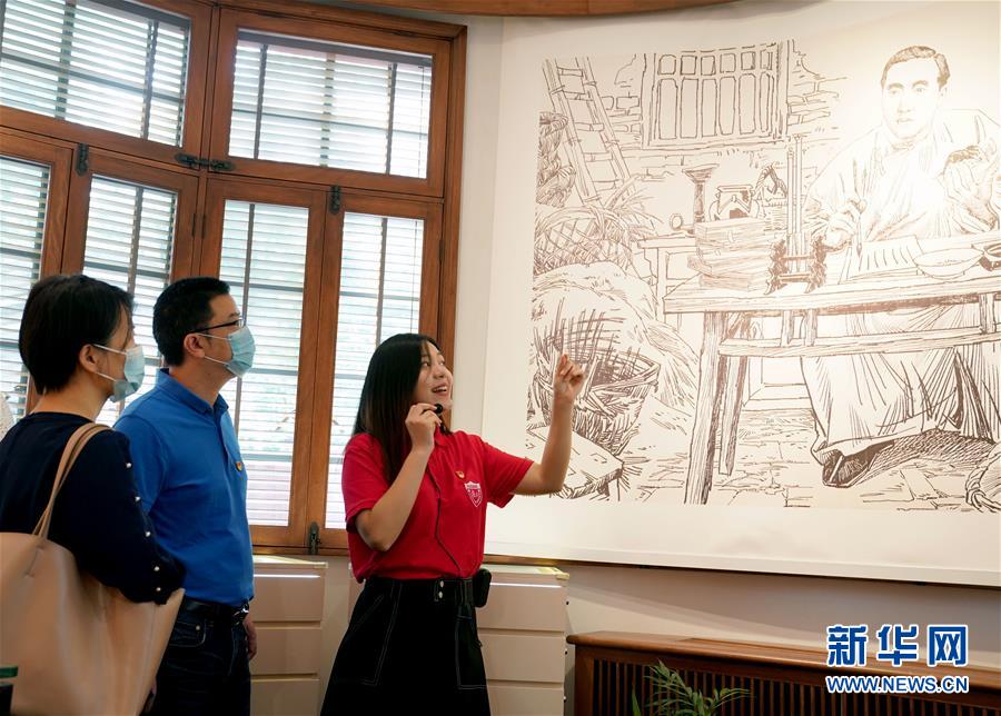 6月30日,复旦大学《共产党宣言》展示馆党员志愿服务队队员、复旦大学马克思主义学院博士生陆婷婷(右一)在为观众讲解。陈望道是《共产党宣言》首个中文全译本的翻译者,也是新中国成立后复旦大学的第一任校长。2018年5月,复旦大学将陈望道故居改造为《共产党宣言》展示馆,该校一批青年教师和学生组建党员志愿服务队,面向广大师生和社会各界开展宣讲活动。复旦大学《共产党宣言》展示馆党员志愿服务队名为“星火”,由该校青年教师、博士生、硕士生党员组成。两年多时间里,志愿服务队共服务学校及社会各界参观者近5万人次,年均讲解700多场。新华社记者刘颖摄