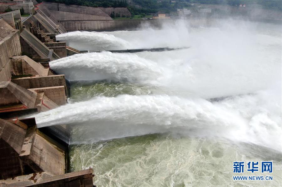 这是7月1日拍摄的黄河小浪底洪水调度运用、水库泄洪的场景(无人机照片)。新华社记者朱祥摄