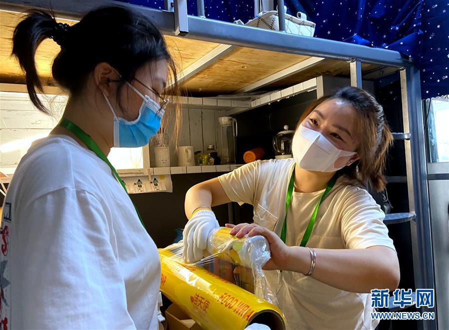 7月1日,在北理工学生宿舍,两名辅导员在为毕业生打包行李。6月29日起,北京理工大学教职员工开始为2020届6000多名需要打包的毕业生集中进行行李打包、邮寄和留置物品存放工作。经过提前与毕业生“一对一”沟通,老师们耐心细致地通过手机“直播”打包行李的全过程,与每一个同学认真核对其个人物品,细心收纳摆放、整理密封、搬运寄送,让不能返校的毕业生们安心、放心。新华社记者魏梦佳摄