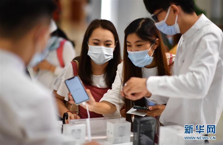 7月1日,顾客在海口日月广场免税店选购手机等电子消费产品。当日,海南开始实施调整后的离岛免税购物政策。海南离岛旅客每年每人免税购物额度提高至10万元,电子消费产品等7类新增商品开售。新华社记者郭程摄