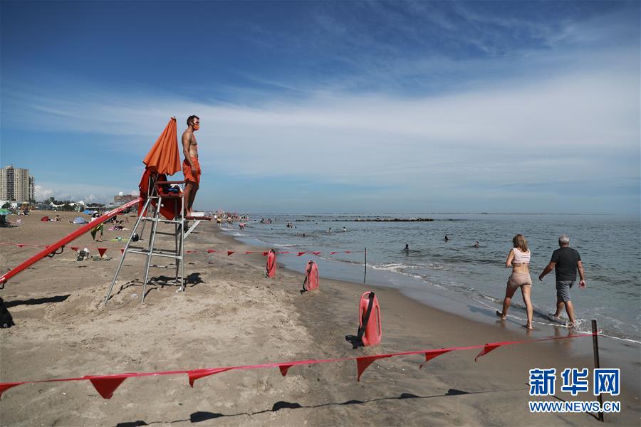 救生员上岗 美国纽约市属海滩准许民众游泳