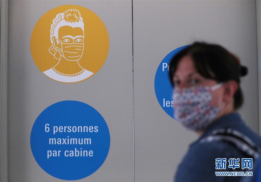 7月1日,法国巴黎蓬皮杜艺术中心的电梯上贴着“请佩戴口罩”和“最多6人乘梯”的标识。因新冠疫情关闭的法国巴黎蓬皮杜艺术中心于7月1日重新开门迎客。目前,中心只开放6层的临时展区和4、5层的现代艺术常设展区。参观者需提前网上预约参观时段,11岁以上参观者须佩戴口罩,参观过程中保持安全距离。新华社记者高静摄