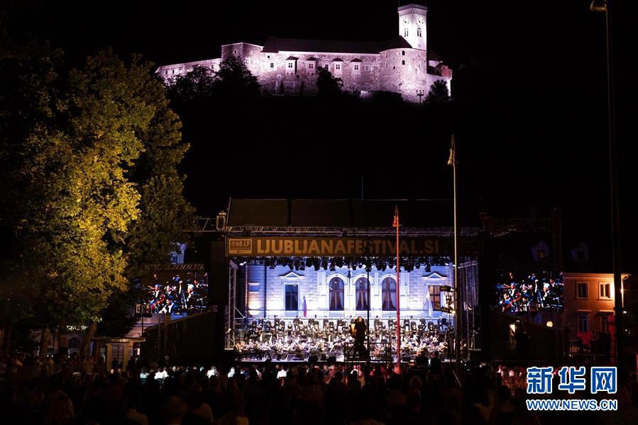 7月1日,乐手们在斯洛文尼亚首都卢布尔雅那举行的艺术节开幕式上演出。当日,第68届卢布尔雅那艺术节拉开帷幕。新华社记者彭立军摄