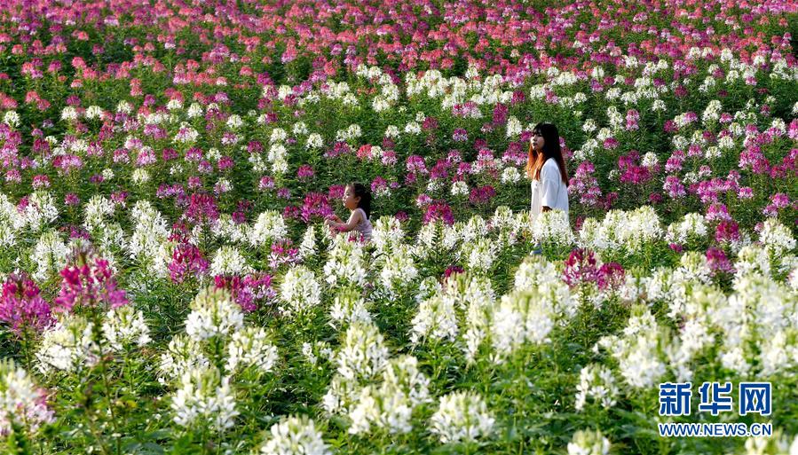 7月1日,市民在位于留坝县城的金水湾花海游玩。近日,陕西省汉中市留坝县金水湾花海的各类鲜花次第绽放,绚丽缤纷。新华社记者刘潇摄