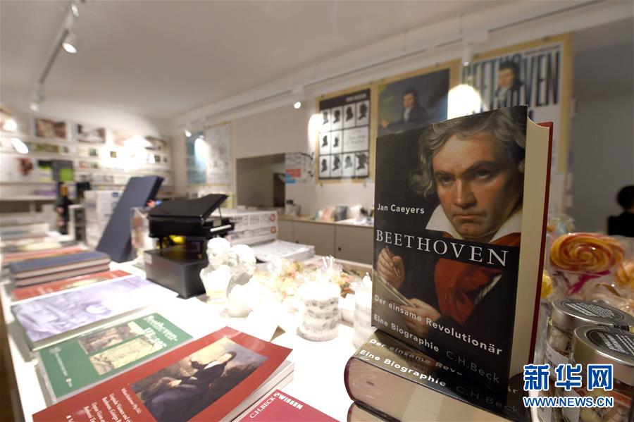 7月2日,奥地利维也纳的贝多芬博物馆纪念品商店展示关于贝多芬的书籍。因疫情关闭的奥地利维也纳贝多芬博物馆7月1日起再次开门迎客。该博物馆是贝多芬在维也纳的故居之一,贝多芬曾在此长期居住并创作了部分经典的音乐作品。2020年是贝多芬诞辰250周年。新华社记者 郭晨 摄