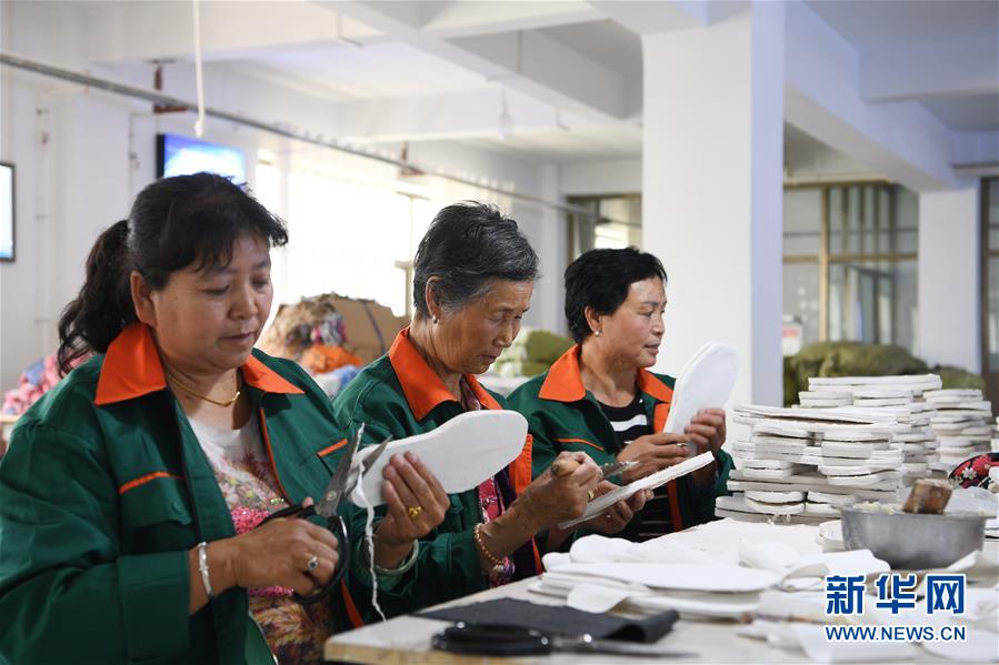 7月2日,临夏县百利布鞋加工农民专业合作社员工在加工布鞋。甘肃省临夏回族自治州临夏县将布鞋加工定为重点扶持发展的产业,采用“政府+公司+贫困户”的产业扶贫模式,由政府主导、企业出资,在贫困村建设“扶贫车间”,吸纳贫困群众从事布鞋加工产业增加收入。截至2019年底,当地布鞋加工企业和加工户遍及近百个行政村,从业人员达到4000多人,累计生产布鞋600多万双,实现销售收入2.32亿元。新华社记者范培珅摄