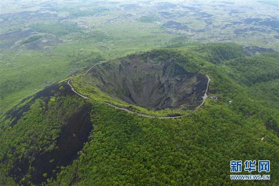 这是7月3日拍摄的五大连池风景区(无人机照片)。 时下,五大连池风景区内植被葱茏,在火山、熔岩台地、火山堰塞湖的映衬下,景色壮美。 五大连池风景区位于黑龙江省黑河市,是较为典型和完整的近代火山喷发遗迹,被喻为“天然的火山博物馆”。 新华社记者 谢剑飞 摄