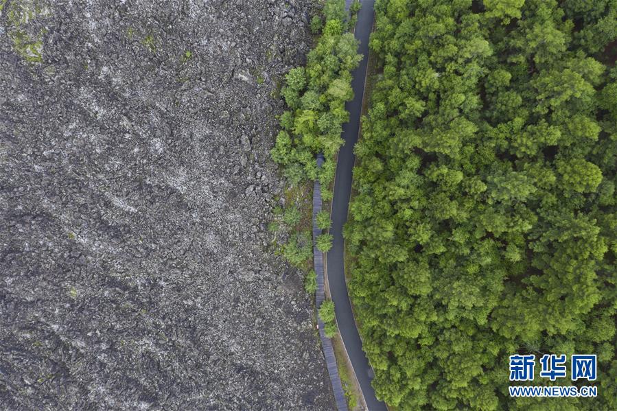 这是7月3日拍摄的五大连池风景区(无人机照片)。 时下,五大连池风景区内植被葱茏,在火山、熔岩台地、火山堰塞湖的映衬下,景色壮美。 五大连池风景区位于黑龙江省黑河市,是较为典型和完整的近代火山喷发遗迹,被喻为“天然的火山博物馆”。 新华社记者 谢剑飞 摄