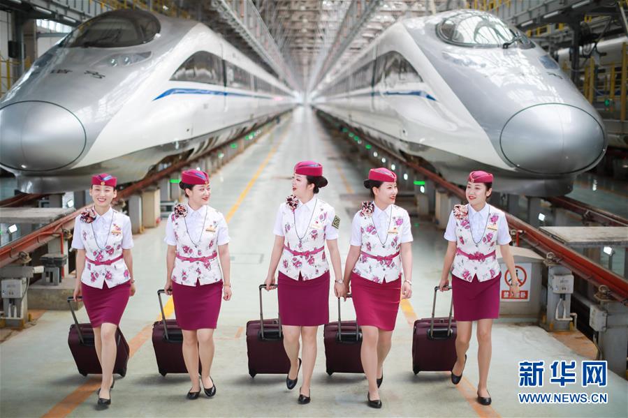 7月3日,担任首发列车值乘工作的贵阳客运段乘务员在贵阳亮相。 新华社记者 刘续 摄