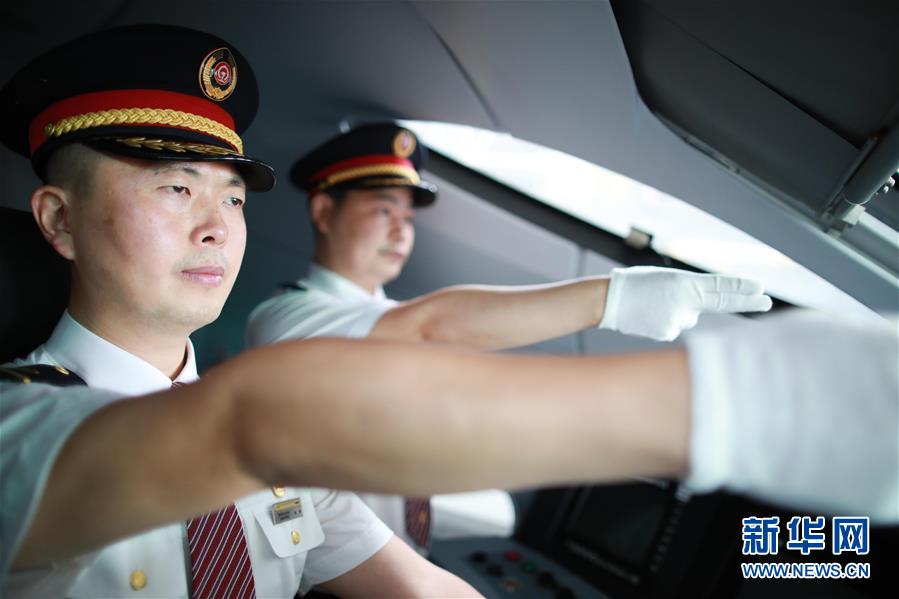 7月3日,担任首发列车值乘工作的贵阳机务段司机在贵阳亮相。 新华社记者 刘续 摄