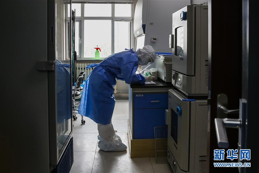 7月3日,中日友好医院检验科新冠核酸检测实验室的检验人员张鑫在实验室内查看样本。新华社记者张玉薇摄