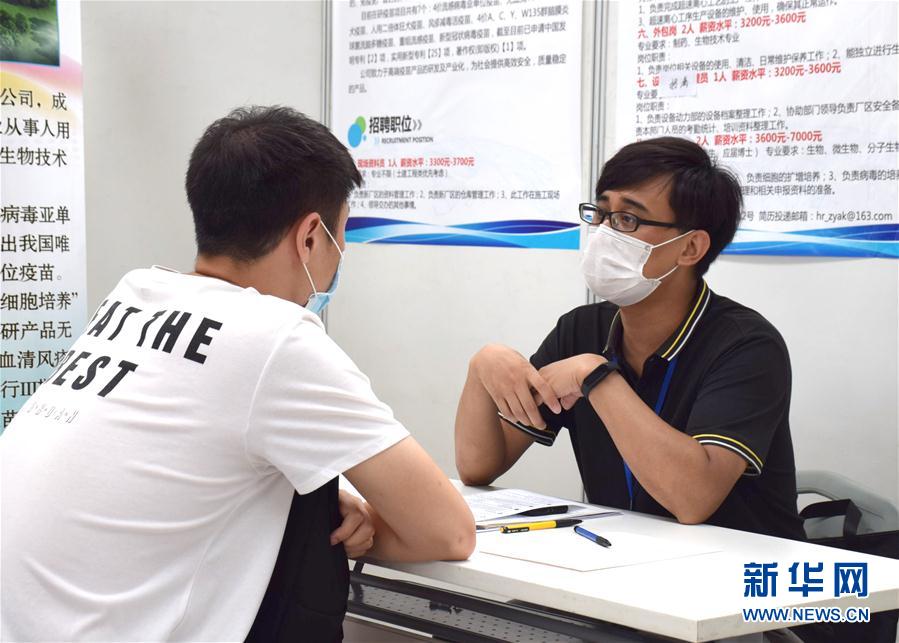 7月4日,求职者与企业人事专员交流。新华社记者 白佳丽 摄