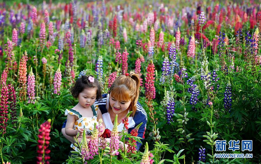 游客在陕西太白县咀头镇七里川村的鲁冰花产业园内观光游览(7月4日摄)。近日,陕西省宝鸡市太白县咀头镇七里川村鲁冰花产业园内的鲁冰花、金鸡菊、蓝香芥等花卉竞相绽放,吸引大批游客前来参观。新华社记者刘潇摄
