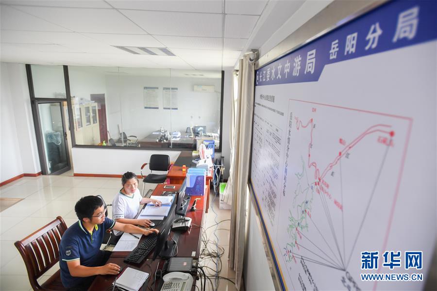 7月5日,长江委水文中游局岳阳分局工作人员在值守。受持续强降雨和上游来水影响,洞庭湖城陵矶水位持续上涨。水文监测数据显示,截至7月5日16时,洞庭湖城陵矶水位达到32.75米,超警戒水位0.25米。当地防汛部门正严密监控水情雨情,备好防汛物资并加强应急值守,力争安全度汛。新华社记者陈泽国摄