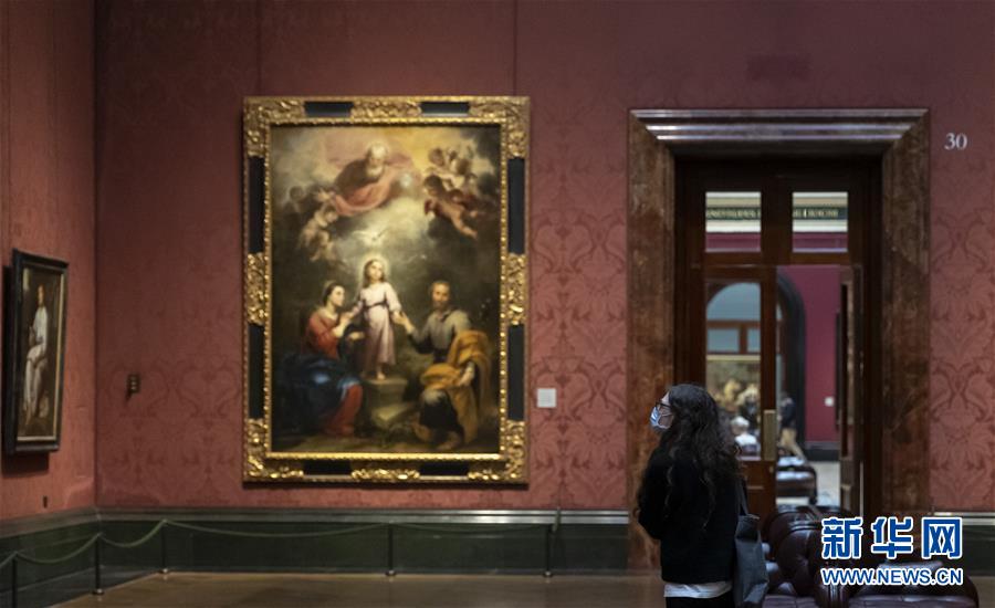 7月4日,参观者佩戴口罩在英国国家美术馆的媒体开放日上参观。受新冠疫情影响而关闭的英国国家美术馆将于7月8日重新对公众开放,成为伦敦首批开门迎客的博物馆、美术馆。参观者需提前网上预约参观时段,全程佩戴口罩且保持安全距离。新华社记者韩岩摄