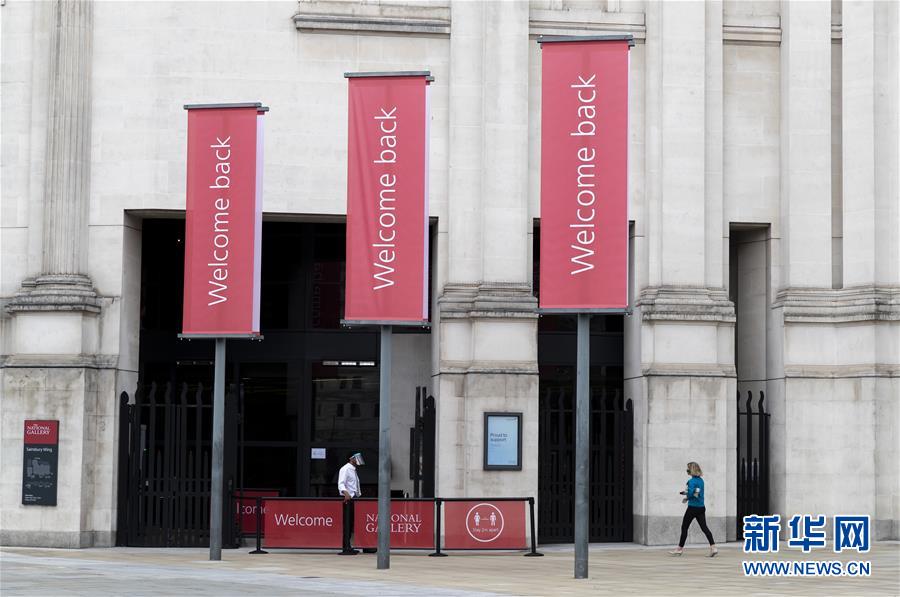 这是7月4日在英国国家美术馆入口处拍摄的欢迎标语。新华社记者韩岩摄