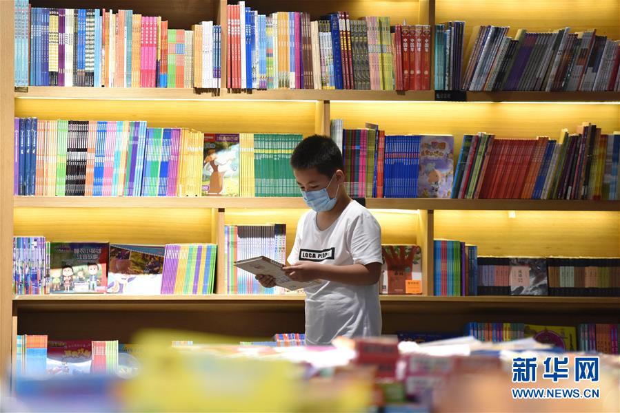7月5日,一名小朋友在河北省定州市新华书店挑选图书。近日,河北省定州市新华书店在做好疫情防控的前提下,开展“乐享图书嘉年华”系列活动,通过举办图书联展、亲子阅读、少儿读物推介等活动,吸引少年儿童走进图书馆,感受书香陪伴的夏天。新华社记者朱旭东摄