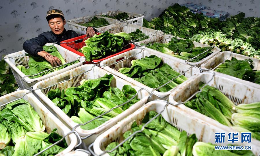 在陕西太白县咀头镇咀头街村供港蔬菜示范基地内,工作人员往冷库里摆放罗马生菜(7月4日摄)。新华社记者刘潇摄