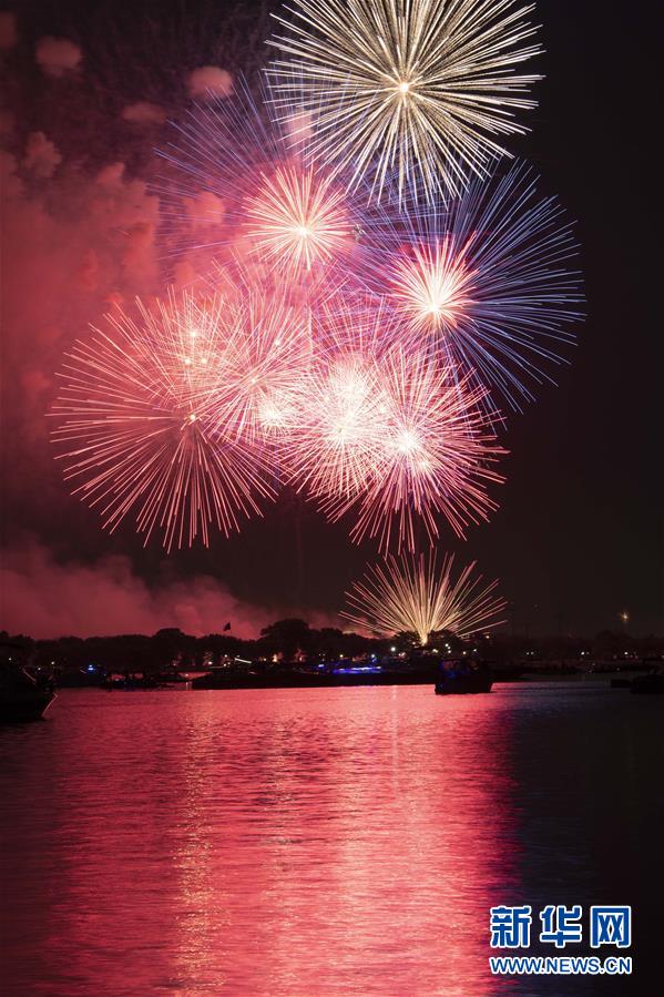 7月4日,焰火在美国华盛顿上空绽放,庆祝美国独立日。当日是美国独立日,美国多地疫情仍面临严峻形势。美国约翰斯·霍普金斯大学实时统计数据显示,美国累计新冠确诊病例4日已超过280万例。新华社记者刘杰摄