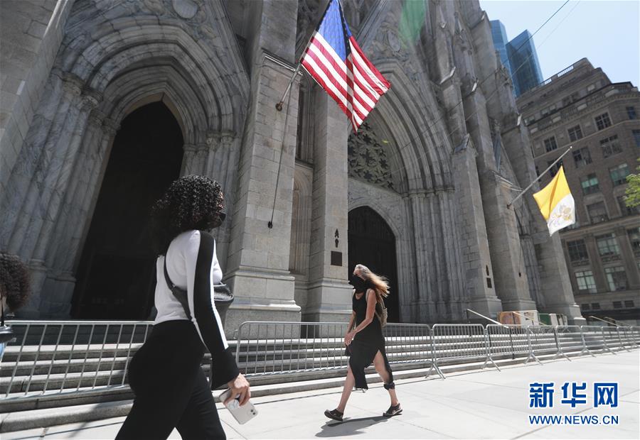 7月4日,人们戴着口罩走在美国纽约第五大道。当日是美国独立日,美国多地疫情仍面临严峻形势。美国约翰斯·霍普金斯大学实时统计数据显示,美国累计新冠确诊病例4日已超过280万例。新华社记者王迎摄