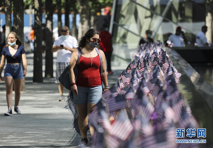 7月4日,参观者在当日重新开放的美国纽约“9·11”世贸中心遗址参观。当日是美国独立日,美国多地疫情仍面临严峻形势。美国约翰斯·霍普金斯大学实时统计数据显示,美国累计新冠确诊病例4日已超过280万例。新华社记者王迎摄