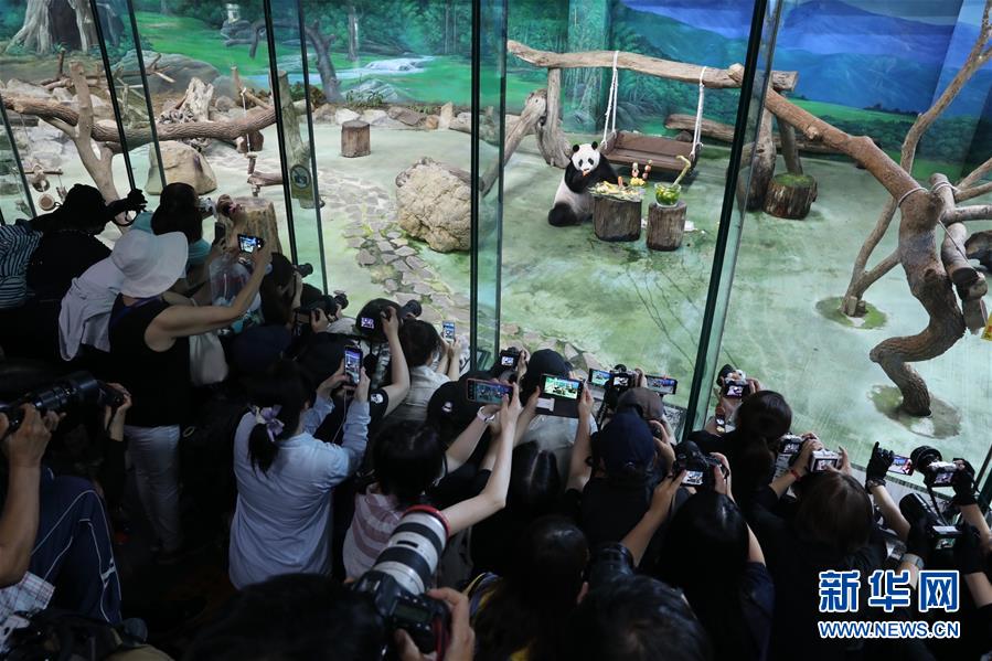 7月6日,参观者在台北市立动物园拍摄大熊猫“圆仔”。当日,台北市立动物园为大陆赠台大熊猫“团团”“圆圆”的孩子“圆仔”庆祝7周岁生日。新华社记者祁星摄