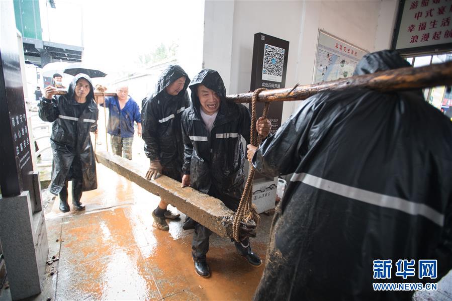 7月6日,工作人员在武汉龙王庙封堵闸口。记者6日从武汉市防汛抗旱指挥部办公室获悉,5日以来,武汉遭暴雨袭击,全市多处路段渍水。至6日4时,长江汉口站超设防水位1.79米,汉江新沟站超警戒水位0.01米。鉴于当前水雨汛情和渍涝情况,武汉市从6日5时起,将排涝应急响应级别提升至Ⅱ级;从6时30分起,将防汛应急响应级别提升至Ⅱ级。新华社记者肖艺九摄