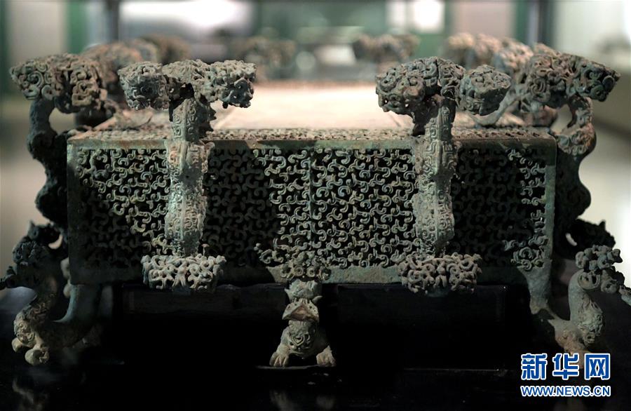 这是河南博物院展厅里的云纹铜禁(2019年11月18日摄)。新华社记者李安摄