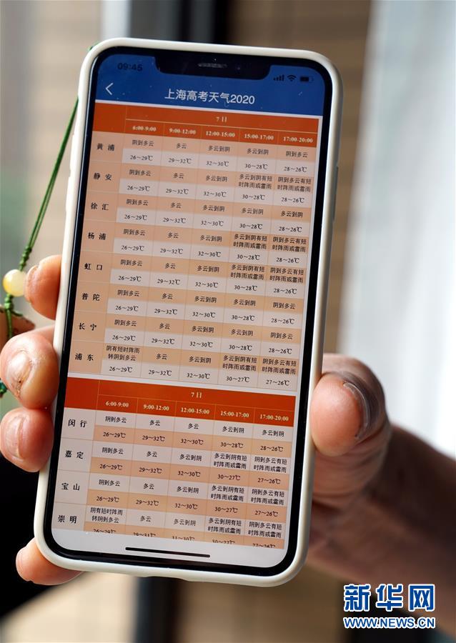 7月7日,上海市气象部门推出“分时分区”的高考气象服务。当日,2020年高考拉开帷幕。新华社记者刘颖摄