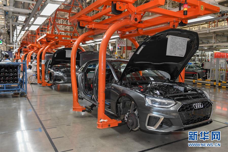在一汽-大众长春基地总装车间,车辆在流水线上等待装配(6月19日摄)。中国第一汽车集团披露,截至6月30日,集团上半年共计生产整车162.23万辆,同比增长1.5%;销售整车163.09万辆,同比增长2.3%。新华社记者张楠摄
