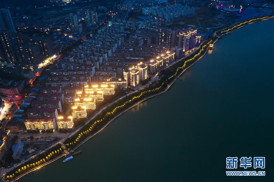 这是融安县城夜色(7月7日摄,无人机照片)。夏夜的广西融安县城灯火璀璨,景色迷人。新华社记者张爱林摄