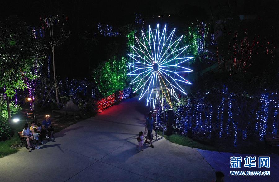 这是融安县城一处夜景(7月7日摄,无人机照片)。夏夜的广西融安县城灯火璀璨,景色迷人。新华社记者张爱林摄