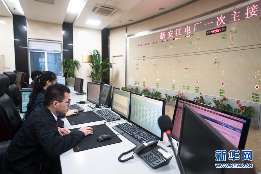 7月7日,新安江电厂工作人员在坝体内部中央控制室工作。受持续降水影响,浙江新安江水库水位持续快速上升。继当日10时开启3孔、12时开启5孔泄洪后,新安江水库于16时增加到7孔泄洪。新安江水库是华东地区最大的水库,在钱塘江流域的防洪度汛中起到关键作用。新华社记者翁忻旸摄