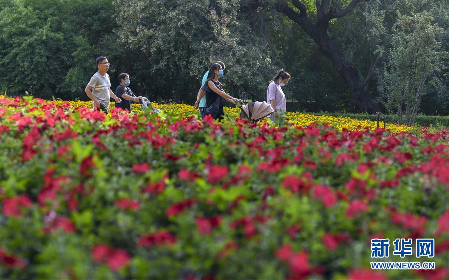 市民在乌鲁木齐人民公园散步(7月5日摄)。新华社记者赵戈摄