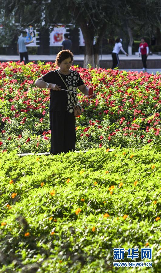 一名市民准备在乌鲁木齐人民公园拍照(7月5日摄)。新华社记者赵戈摄
