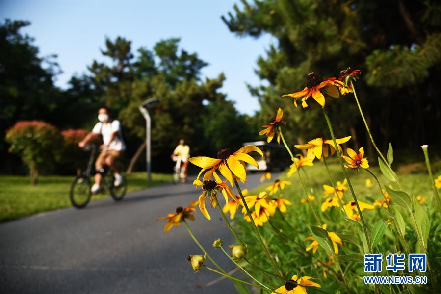 7月7日,市民在日照阳光海岸绿道骑行。新华社记者王凯摄