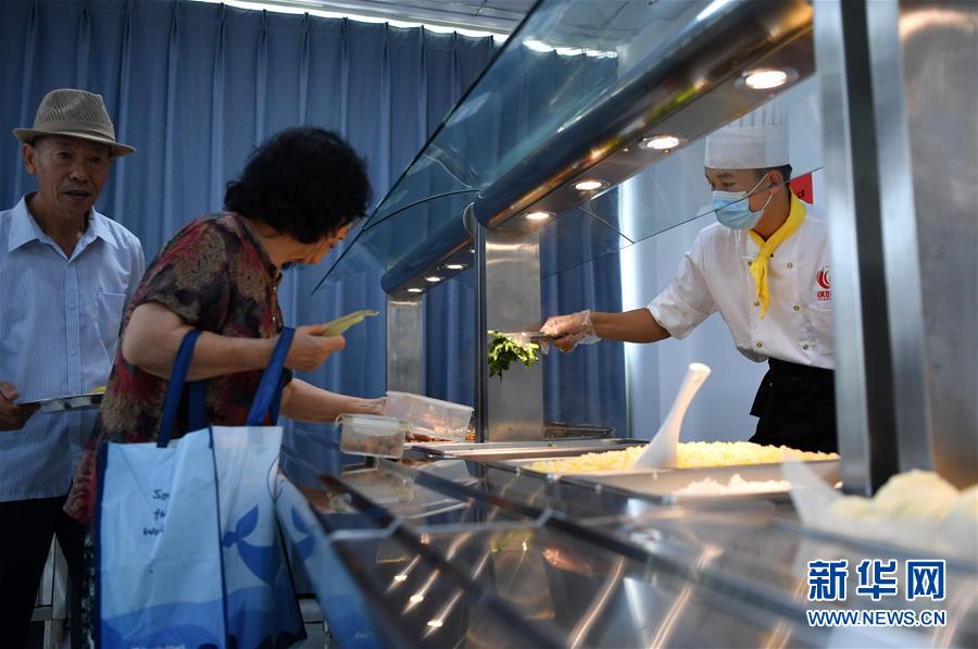 7月7日,老人在付村康养中心(老人家食堂)打餐。近日,天津市西青区精武镇付村康养中心(老人家食堂)运营已步入正轨。该老人家食堂面积约850平方米,由专业餐饮企业负责日常运营,并享受政府补贴,可满足付村及周边老人的就餐需求,还能提供外带、送餐服务。据了解,为切实解决老年人吃饭难问题、增加老年人幸福感,西青区将老人家食堂建设纳入2020年区政府民心工程。目前,已建成51家老人家食堂。新华社记者李然摄