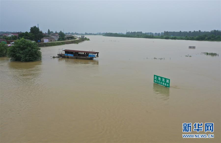 7月9日拍摄的水阳江南京高淳段(无人机照片)。入梅以来,江苏省南京市高淳区多次遭受强降雨,加上上游来水量大,截至7月9日8时,高淳境内水阳江水碧桥水位达到13.01米,超警戒水位2.51米。7月7日水阳江区域已启动防汛应急Ⅰ级响应。高淳区在水阳江区域堤防沿线设立241个防汛值守点,实施24小时值班值守。新华社记者季春鹏摄