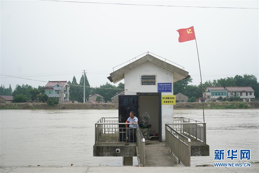 7月9日,在高淳区阳江镇永丰圩,巡堤员在值守点值守。新华社记者季春鹏摄